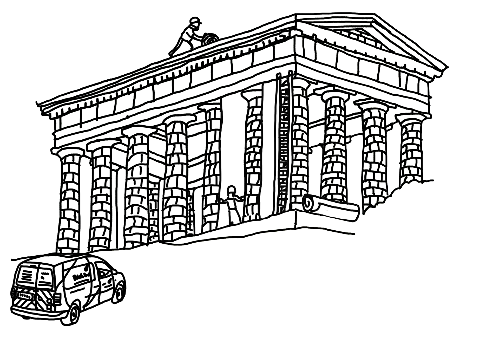 To execute the offer of free insulation, I thought it would be effective to show British Gas workers putting insulation on the roof and walls of the Penshaw Monument (it currently stands as a pillared structure.