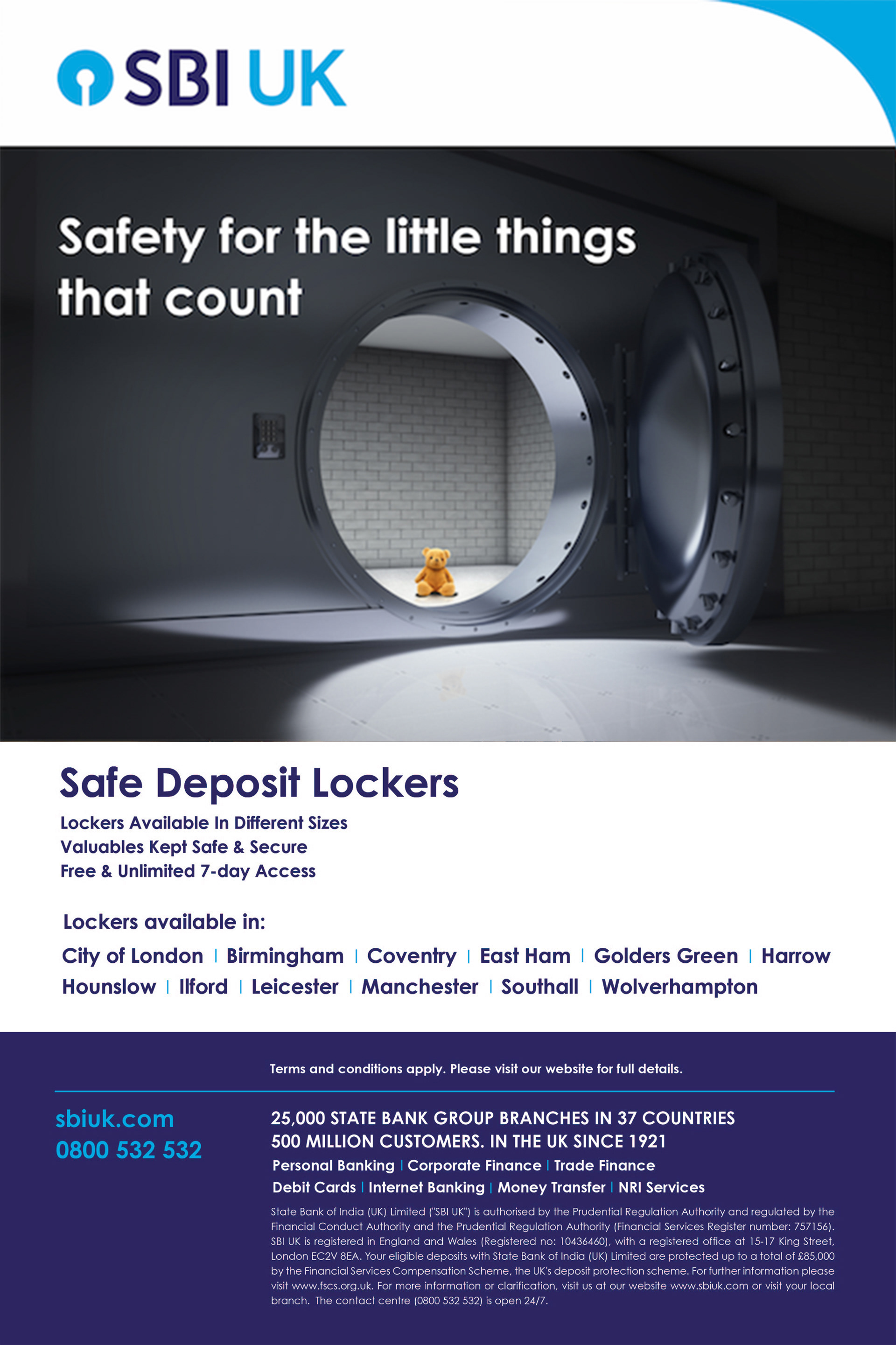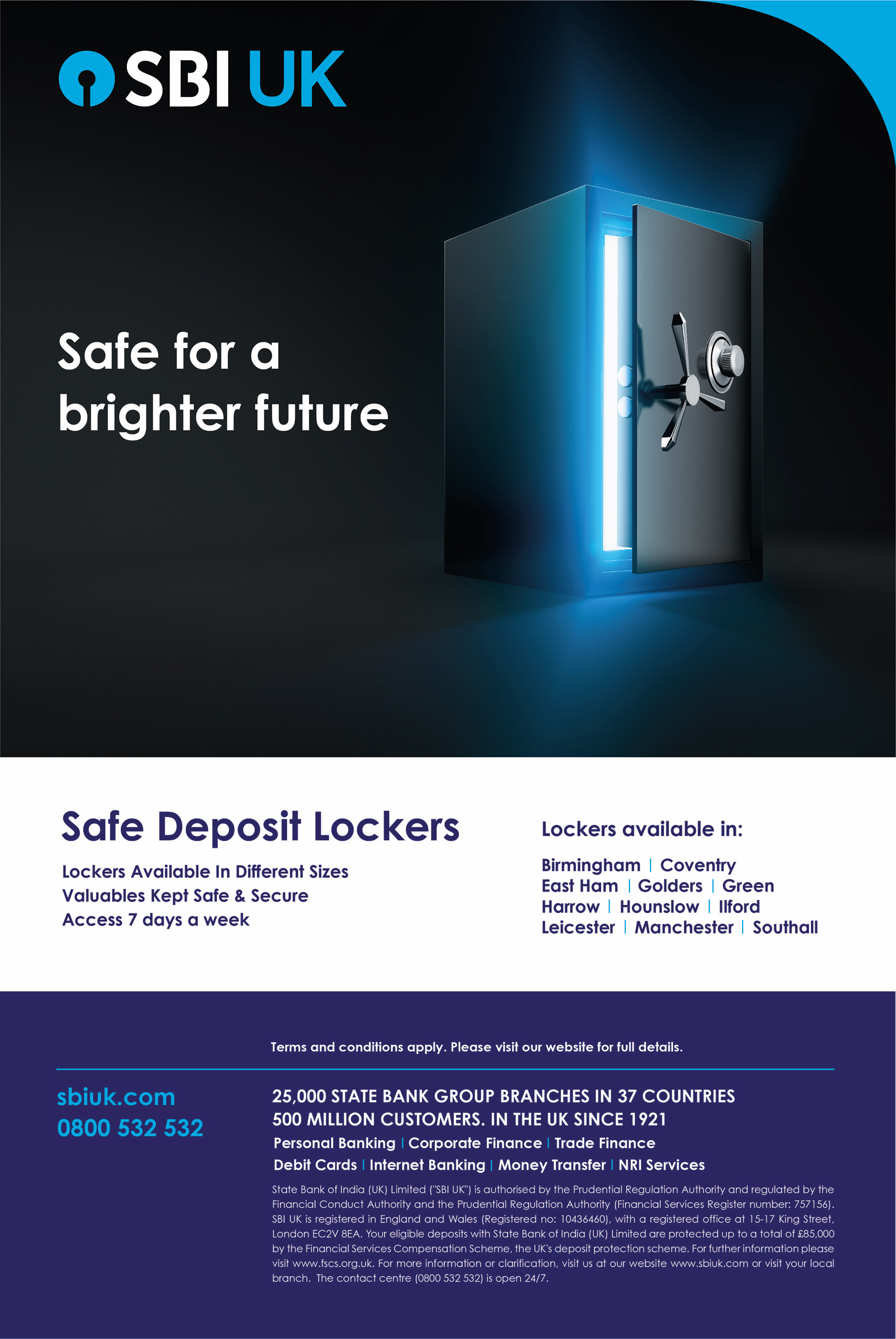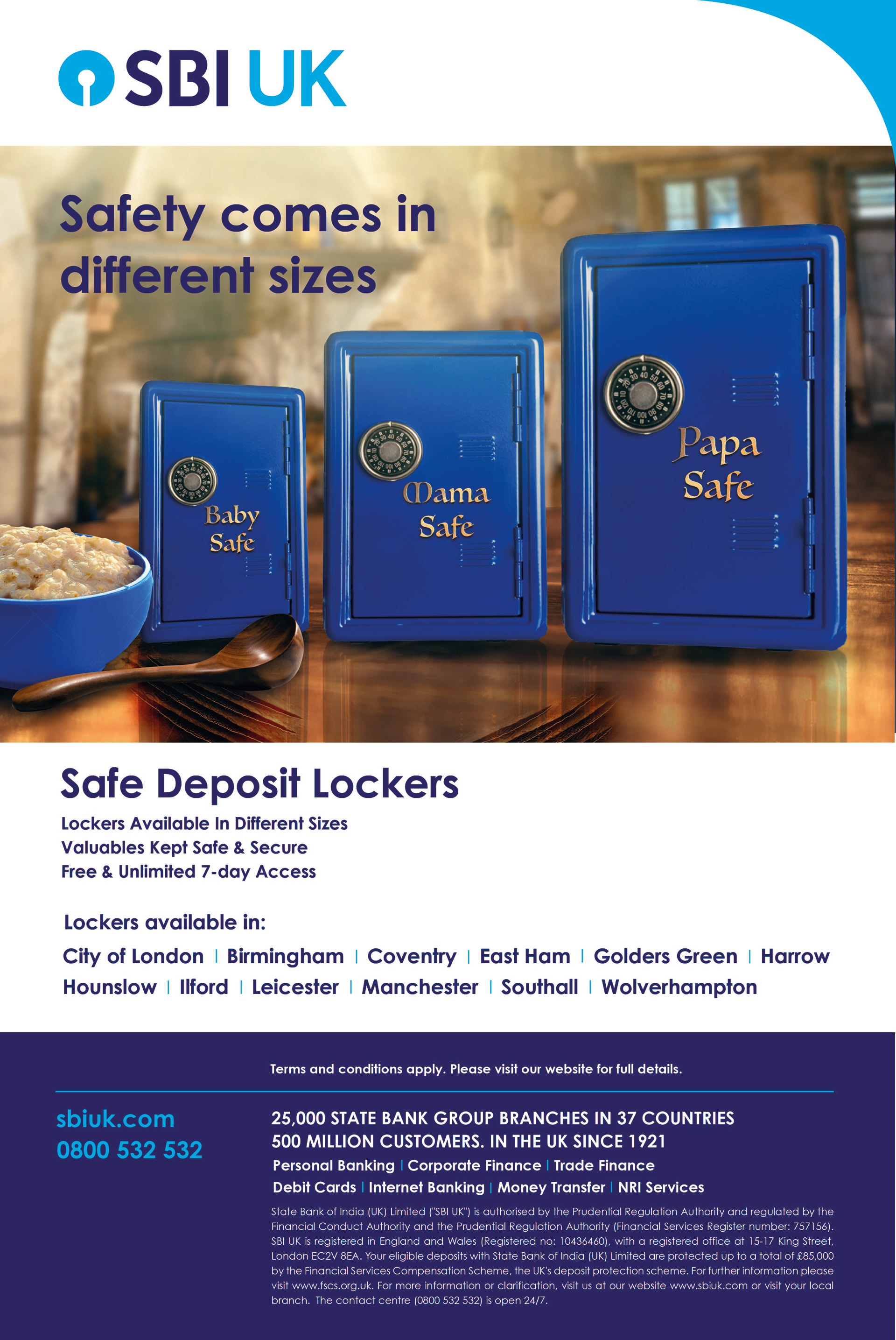 Brief: Create a print advertisement promoting SBI UK's safe deposit lockers.